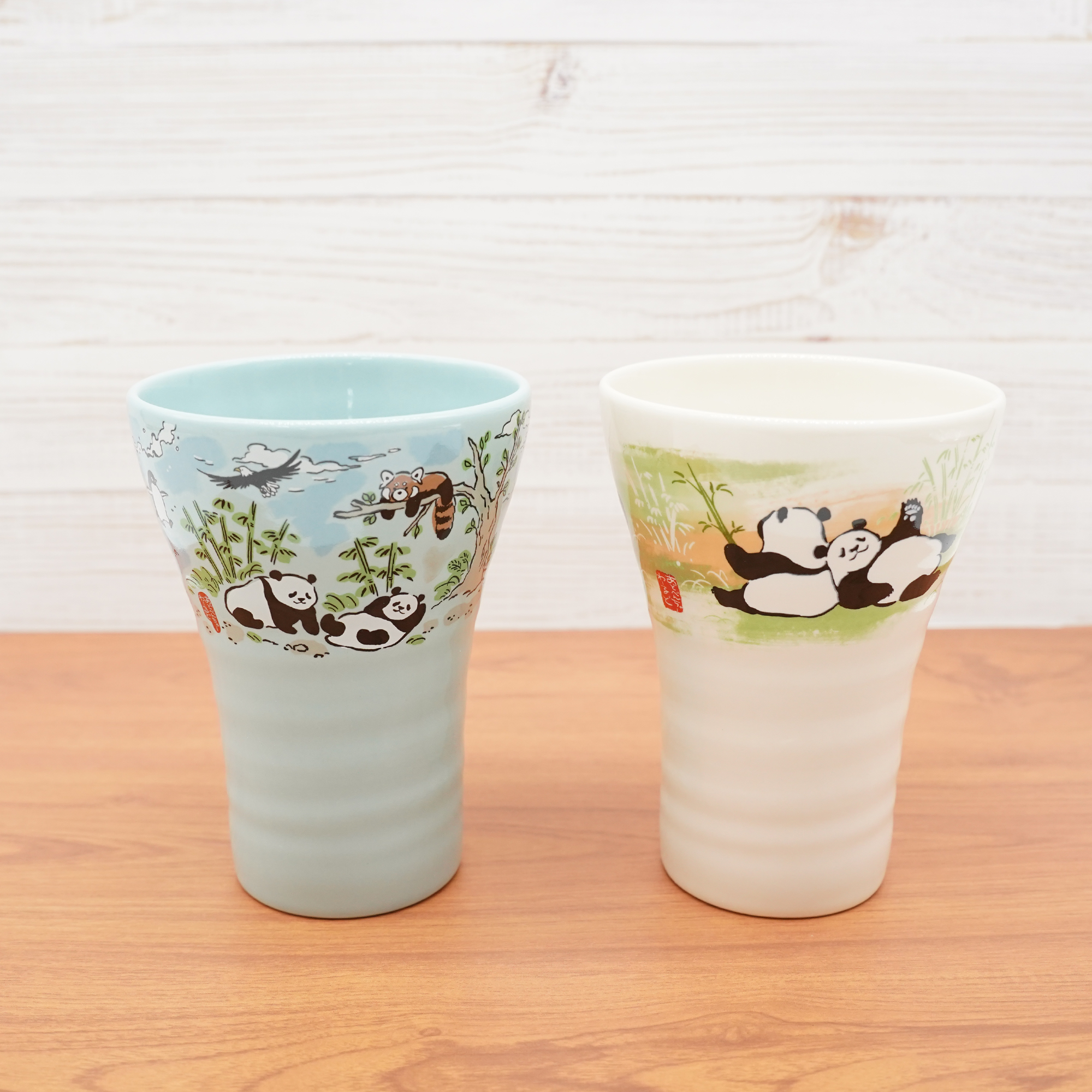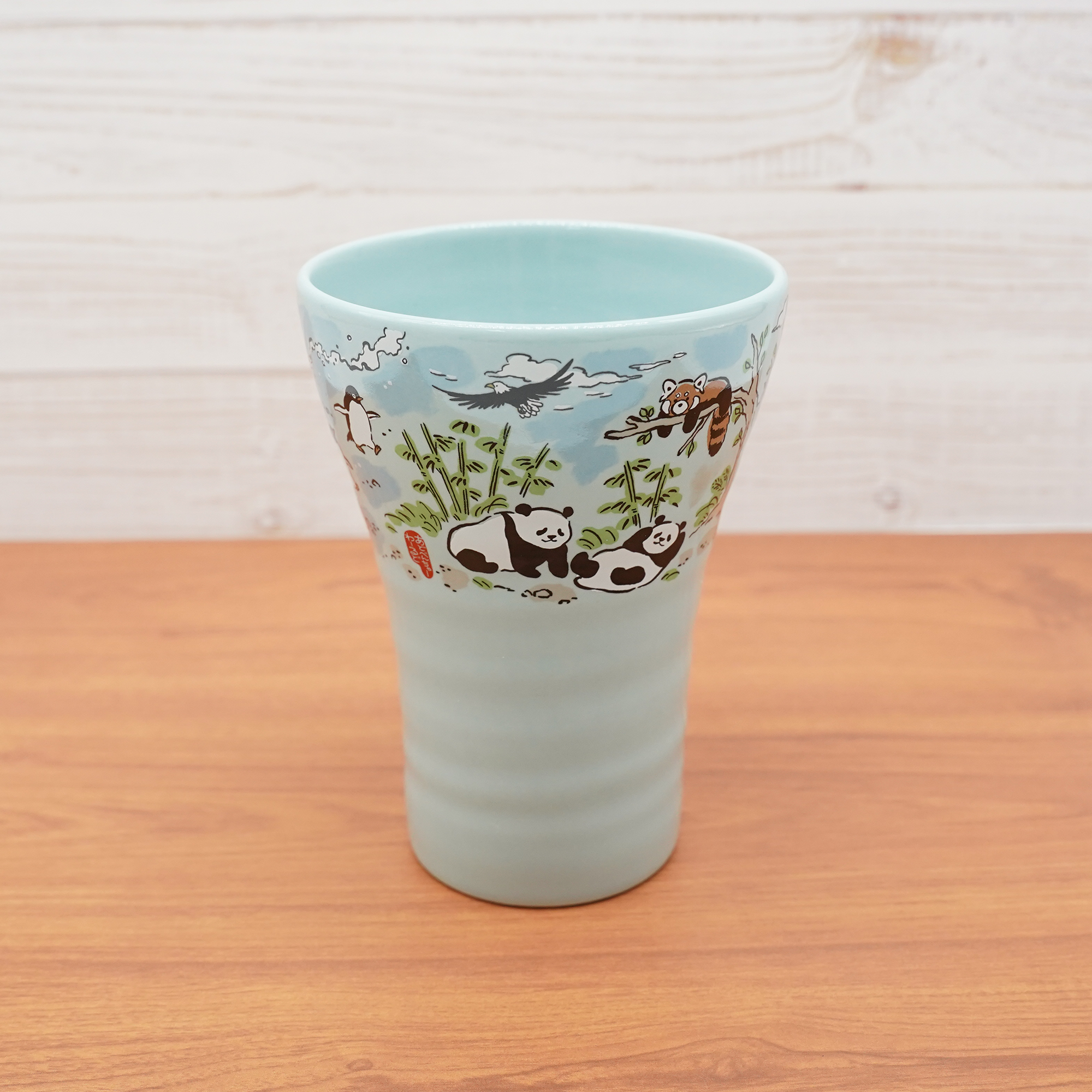 オールキャストとパンダのかわいい姿を墨彩画でデザインした幅広い年齢層におすすめのタンブラー!